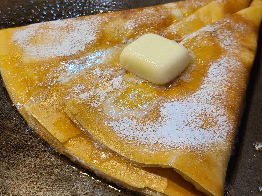 たっぷりのバターとフランス産カソナードシュガーのシンプルな美味しさ!1日1000枚以上売れた大人気クレープです。