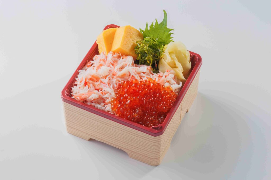 特製のタレの酢飯にずわい蟹といくらの醤油漬け、人気の改善W弁当